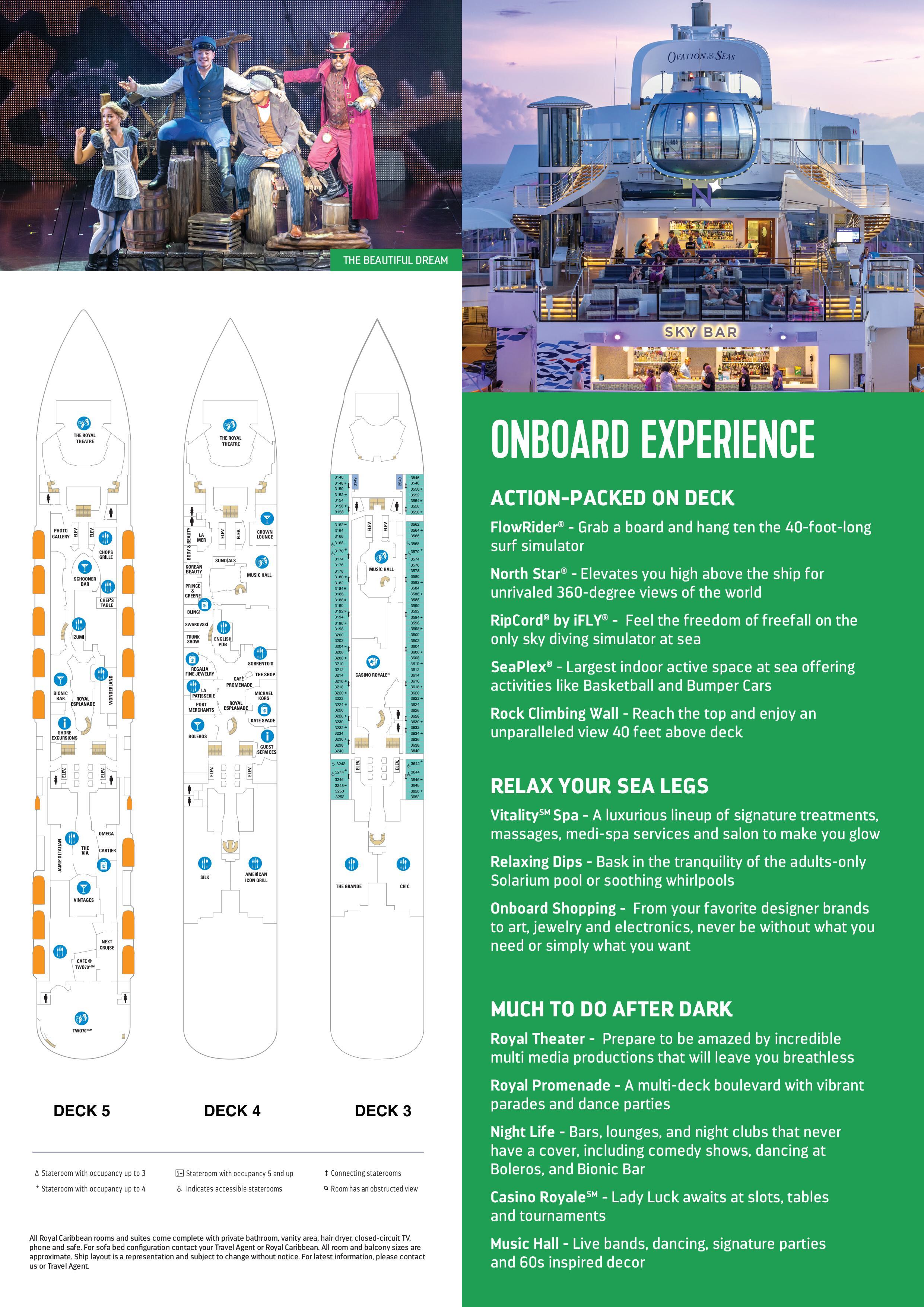 Go scenery scoping from the North Star®, the highest vantage point on any cruise ship — or thrill it up with the Ripcord® by iFLY® skydiving simulator and revved-up bumper cars in the SeaPlex®. Level up your nightlife at the expanded Casino Royale℠ then dance the night away at the all-new Sound Cellar℠. Plus, with brand-new international cuisine to indulge – from theatrical hibachi at Izumi Teppanyaki℠ to the new Giovanni’s℠ Italian Kitchen – there’s a culinary adventure around every corner at 16 flavorful finds.